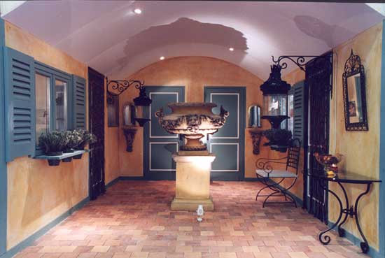 L'ENTREE, c'est votre CARTE DE VISITE. L'exercice de style consistait donc à présenter QUATRE ENTREES de structure identique ; leurs particularités tenaient à des ambiances différentes et à des budgets différents ; vous les avez peut-être vues sur France 2 et France 3 ou dans les journaux. Nous tenions à prouver que le rôle d'un architecte d'intérieur n'est pas d'imposer "son style" au client (rien n'est plus facile que le systématisme !) et se complaire fatalement dans des budgets inaccessibles.