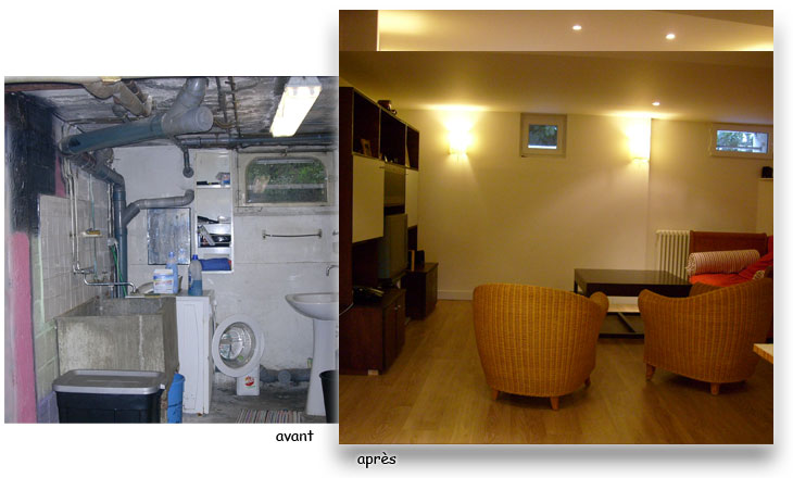 Conjointement, nous avons effectué une « reprise en sous-œuvre » pour abaisser le niveau du sol de la cave et gagner 30 cm de hauteur sous plafond.