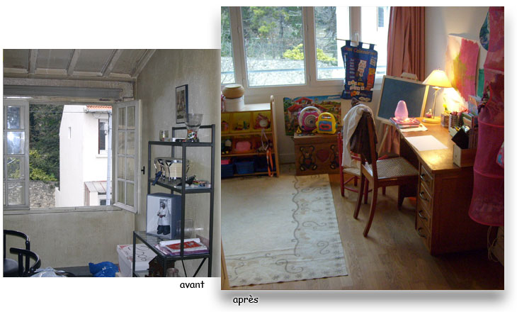 - la cuisine sur le jardin a été muée en chambre pour les parents assortie d'une salle d'eau placée dans l'ancien accès /escalier du sous-sol