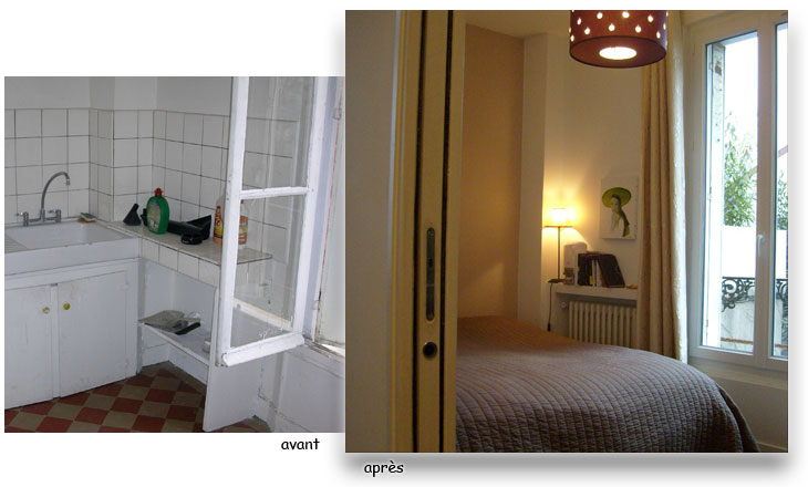 - la chambre sur rue est devenue une cuisine et des WC sur l'entrée