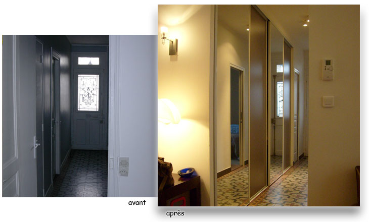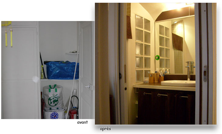 - la SDB en longueur a été remplacée par un grand placard dans l'entrée
